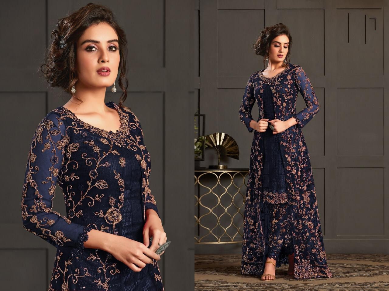 Blue Designer Embroidered Long Shrug Salwar Kameez Suit Etsy